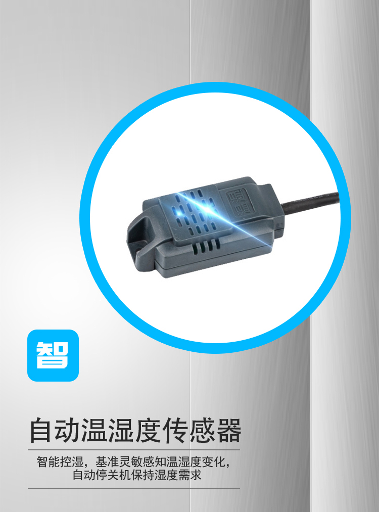 3, 湿度自动控制,即设定好需要的空间湿度值,当机器工作一段时间后达到设定湿度值时,机器自动停机,当空间湿度降低时,机器随即自行启动工作,也可以设置为手动控制。